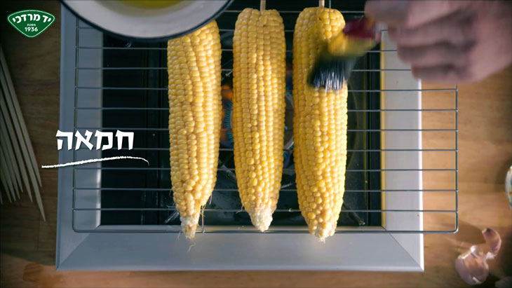 מורידים את שיפודי התירס מהאש ומוזגים עליהם מהרוטב