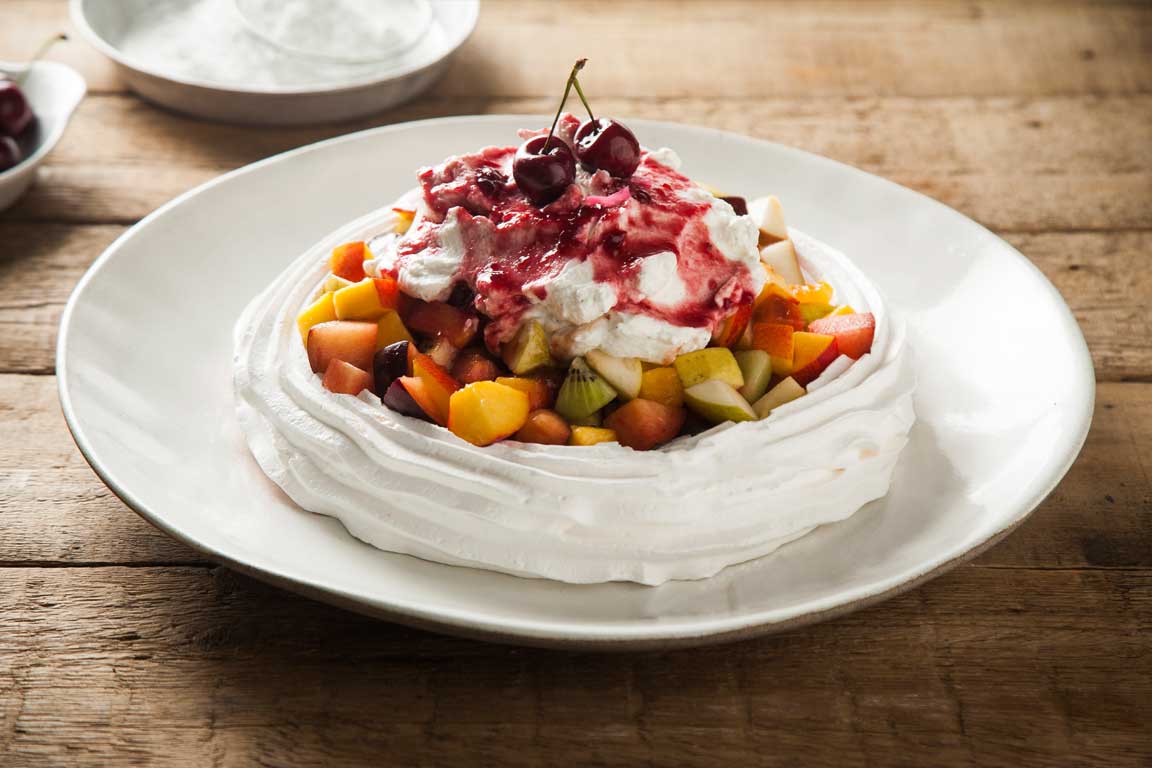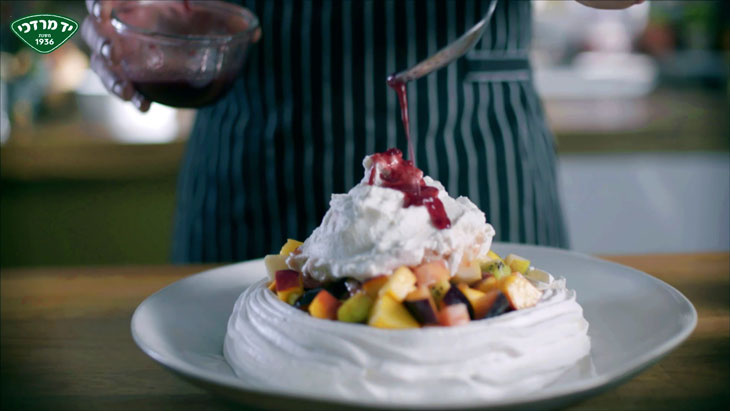 פבלובה פירות ברוטב קונפיטורת תות