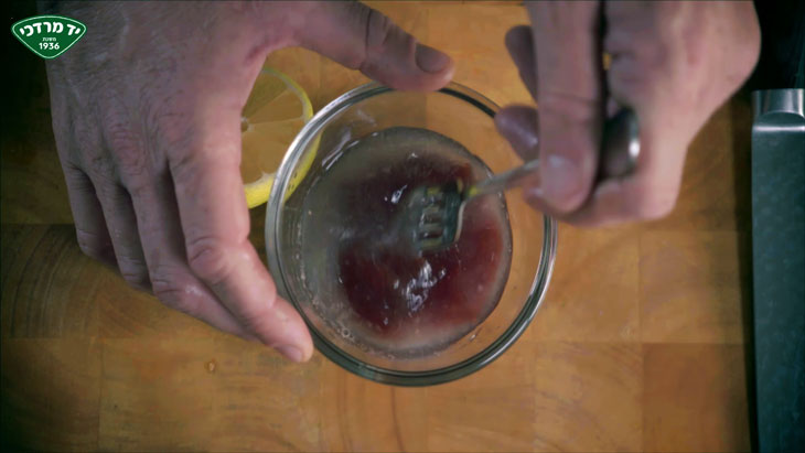 • בקערה מערבבים 2 כפות קונפיטורת תות, כף מיץ לימון וכף מים