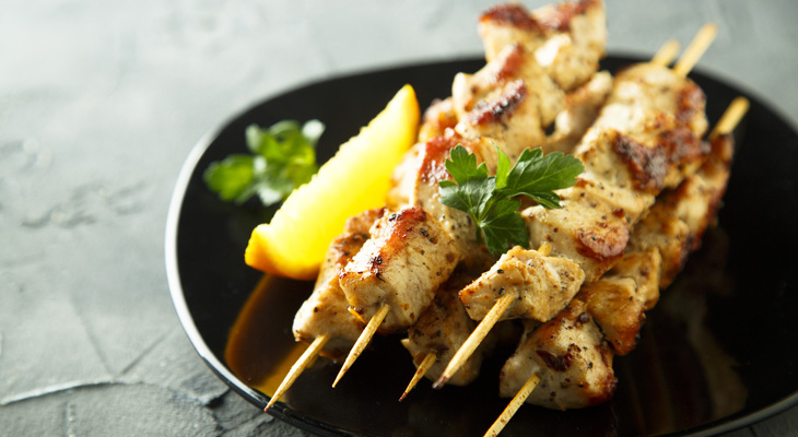 מנה עיקרית: שיש-קבב עוף בדבש ולימון לצד חתיכות מנגו