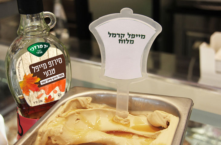 המייפל: "סירופ המייפל הטבעי של יד מרדכי הוא מוצר מצוין. הוא טעים מאוד, פרשי ומרענן, ויכול להתאים למגוון טעמים – אם לקישוט מלמעלה ואם לתוך הגלידה עצמה. המייפל יעבוד טוב עם טעמים אגוזיים, יוגורט, פיסטוק ופירות יער למשל".